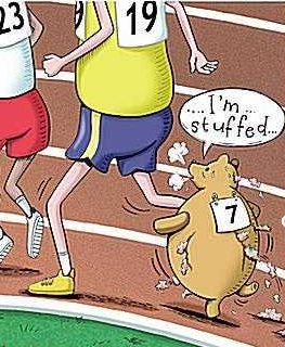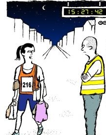 You start to wonder if there is any other way of coming through this marathon without getting embarrassed.  You remember all those tricks by Dick Dastardly in Wacky Races.  No, I don’t think you can get volunteers to post detour signs to get the runners going in the wrong direction!  The Race Marshalls are highly particular about what you do during the run.