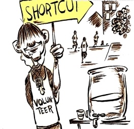 You suddenly remember all those “performance enhancing drugs” some athletes had been caught with.  You wonder if you can start taking these steroids and mask it with something.  You had heard of some obscure African medicine, which would mask the steroids in urine.  You wonder if you can ask that lovely African girl from typing pool to get you some.  I don’t think steroids will help you train better.  How are you going to explain the new moustache and muscles?