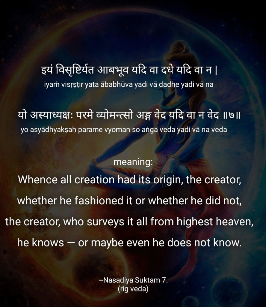 It is interesting that this concept was discussed in the ancient Hindu scriptures – the Rigveda. Nasadiya suktha or the Creation hymn in book ten of Rigveda talks about the creation and the existence of God. The Suktha says that there was nothing before, not even God. It goes so far to say that no one knows what was before as even God was created after the event. So, there might be some sense in an “eternal” religion!